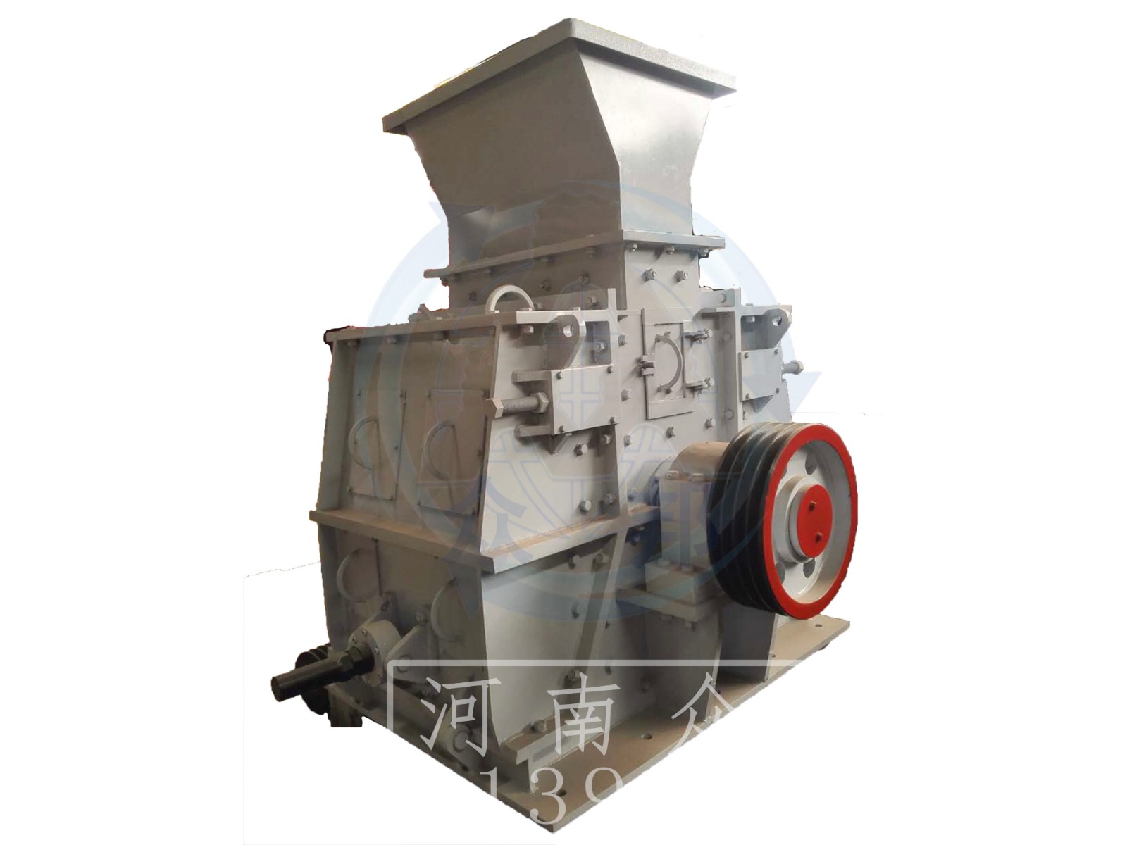 環(huán)錘式破碎機(jī)的工作部件為帶有錘子(又稱錘頭)的轉(zhuǎn)子。轉(zhuǎn)子由主軸、圓盤、銷軸和錘子組成。電動(dòng)機(jī)帶動(dòng)轉(zhuǎn)子在破碎腔內(nèi)高速旋轉(zhuǎn)。物料自上部給料口給入機(jī)內(nèi),受高速運(yùn)動(dòng)的錘子的打擊、沖擊、剪切、研磨作用而粉碎。在轉(zhuǎn)子下部,設(shè)有篩板、粉碎物料中小于篩孔尺寸的粒級(jí) 通過篩板排出,大于篩孔尺寸的粗粒級(jí) 阻留在篩板上繼續(xù)受到錘子的打擊和研磨,通過篩板排出。