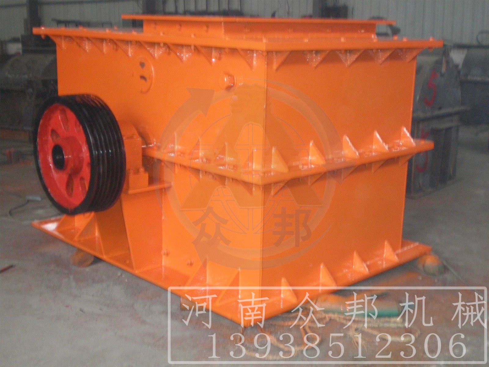 環(huán)錘式破碎機(jī)的工作部件為帶有錘子(又稱錘頭)的轉(zhuǎn)子。轉(zhuǎn)子由主軸、圓盤、銷軸和錘子組成。電動(dòng)機(jī)帶動(dòng)轉(zhuǎn)子在破碎腔內(nèi)高速旋轉(zhuǎn)。物料自上部給料口給入機(jī)內(nèi),受高速運(yùn)動(dòng)的錘子的打擊、沖擊、剪切、研磨作用而粉碎。在轉(zhuǎn)子下部,設(shè)有篩板、粉碎物料中小于篩孔尺寸的粒級(jí) 通過篩板排出,大于篩孔尺寸的粗粒級(jí) 阻留在篩板上繼續(xù)受到錘子的打擊和研磨,通過篩板排出。